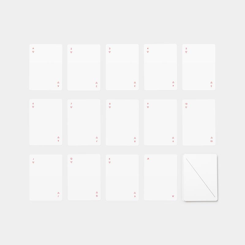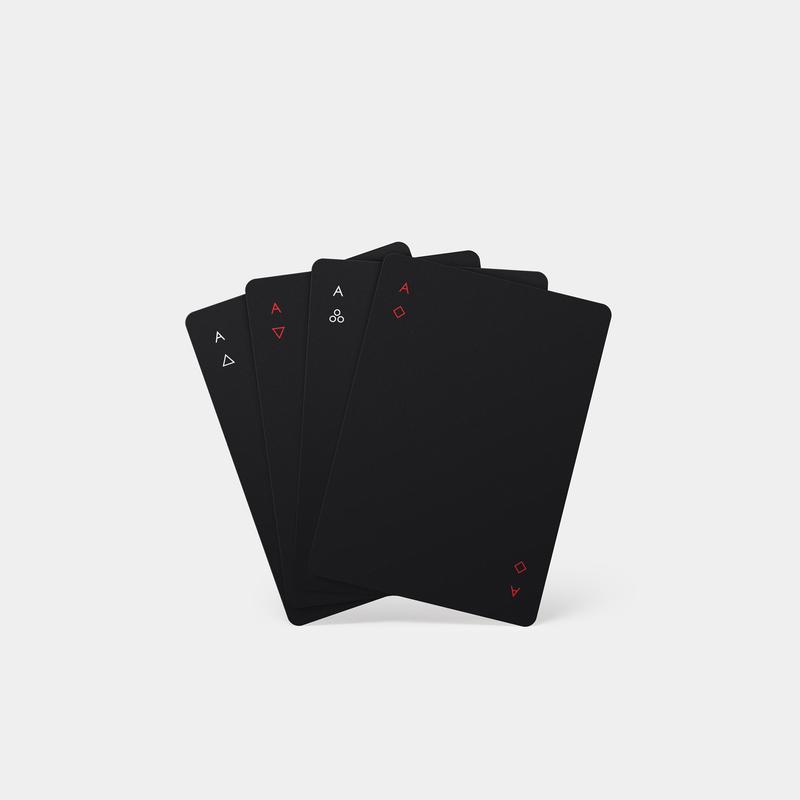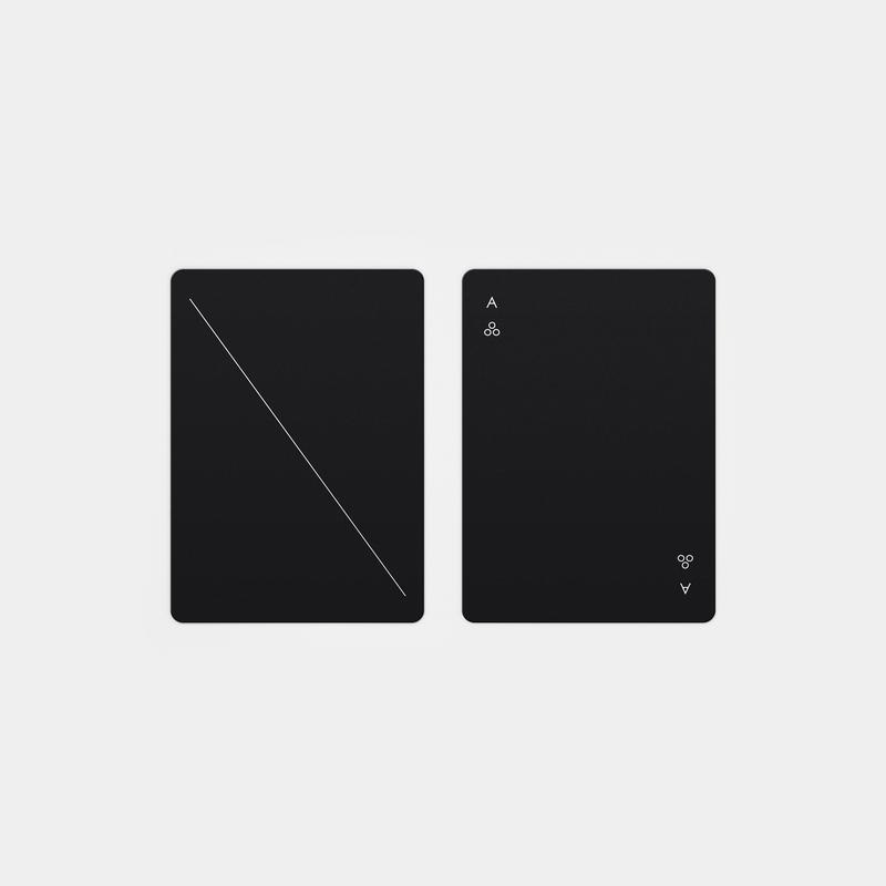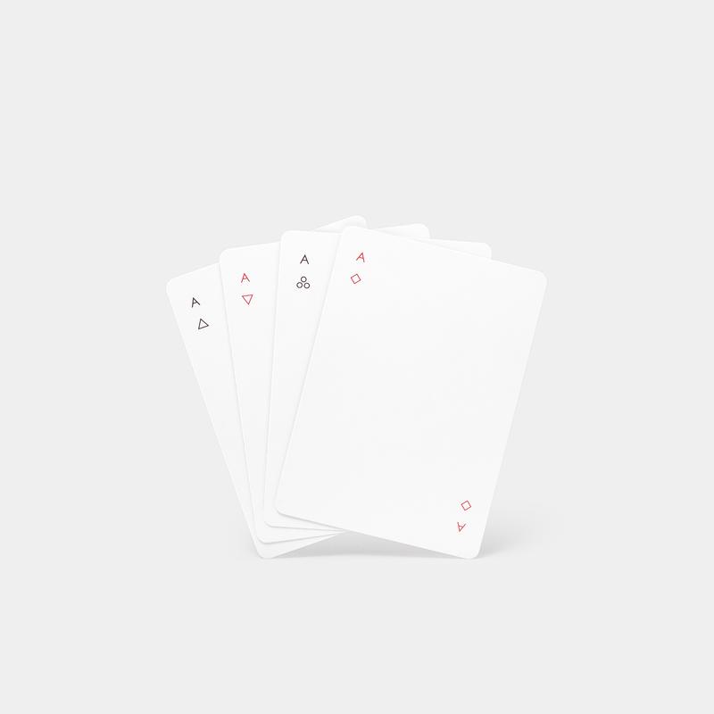Minim is a deck of regulation playing cards re-imagined by NY-based designer Joe Doucet, who managed to successfully reduce the familiar shapes of hearts, clubs, diamonds, and spades to minimal geometric symbols. The requirement to mark the backs of regulation cards has been fulfilled by a single diagonal line instead of the traditional ornamental patterns.